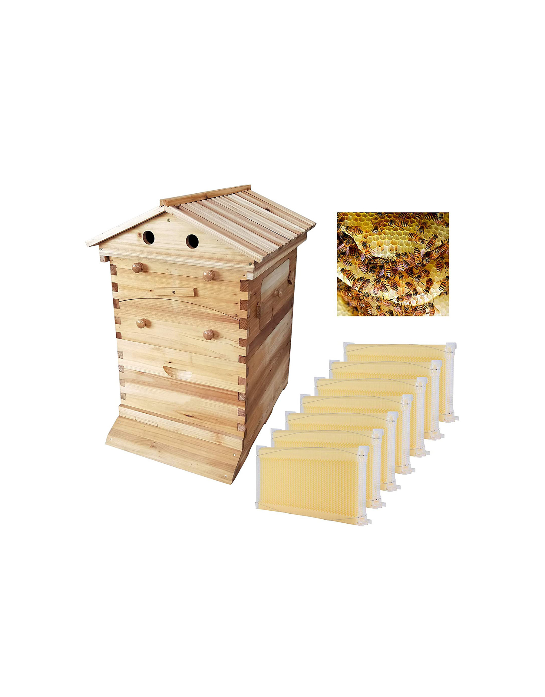 Beehive Beekeeping Wooden Bee Hive House With 7 Pieces Beehive Frame